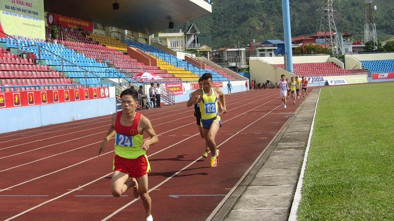 Thi đấu điền kinh trên SVĐ Cẩm Phả.