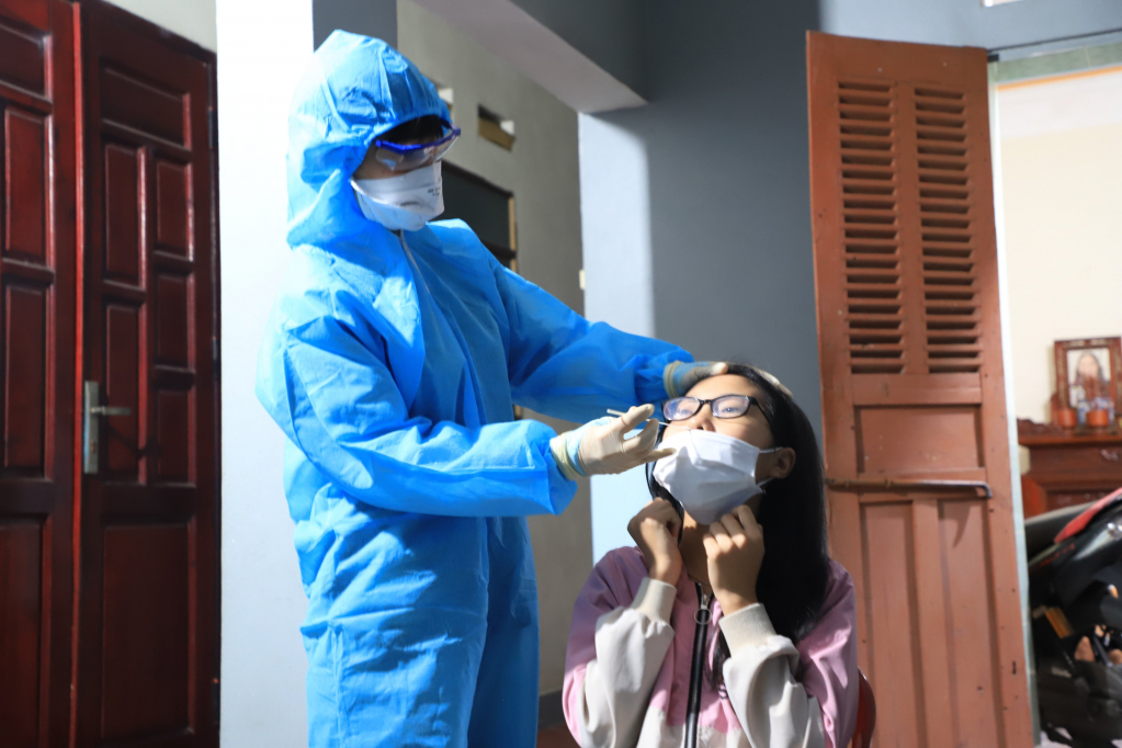 Lấy mẫu xét nghiệm Covid-19 cho người dân ở Đông Triều.