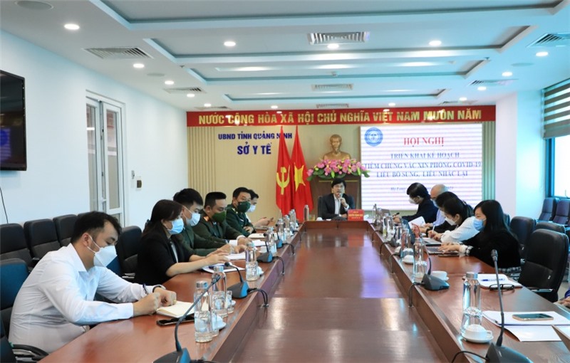 Chiều 17/12, Sở Y tế Quảng Ninh tổ chức Hội nghị trực tuyến triển khai kế hoạch tiêm chủng vắc-xin phòng Covid-19 liều bổ sung, liều nhắc lại trên địa bàn tỉnh Quảng Ninh năm 2021-2022. Tham dự Hội nghị tại 22 điểm cầu trên địa bàn tỉnh có lãnh đạo, cán bộ, nhân viên các đơn vị y tế trong toàn tỉnh và đại diện lãnh đạo 13 địa phương, Bộ chỉ huy Biên phòng tỉnh, Công an tỉnh, Sở Thông tin và Truyền thông.