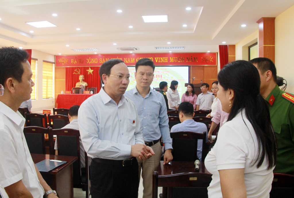 Đồng chí Nguyễn Xuân Ký, Bí thư Tỉnh ủy, Chủ tịch HĐND tỉnh tiếp xúc cử tri xã Thống Nhất, TP Hạ Long trước Kỳ họp thứ 12. Ảnh: Thu Chung.