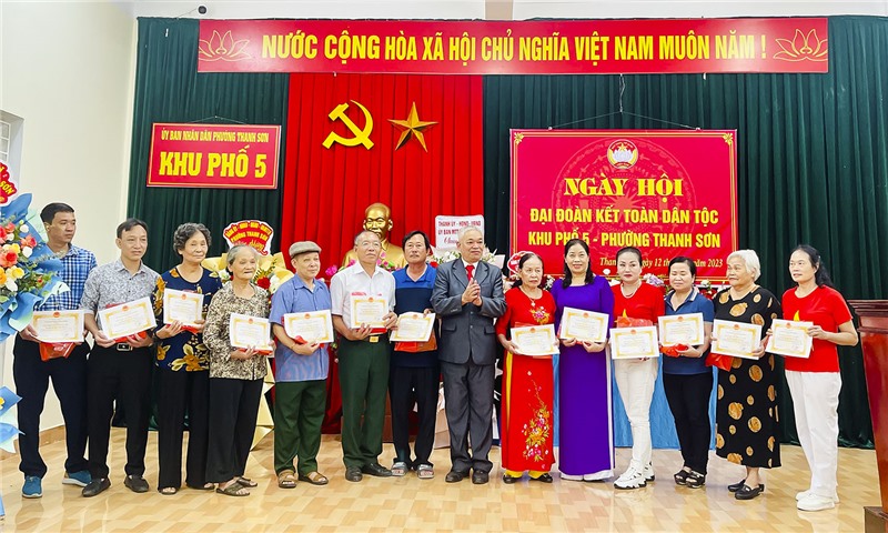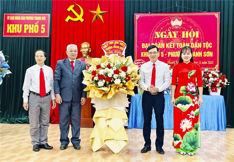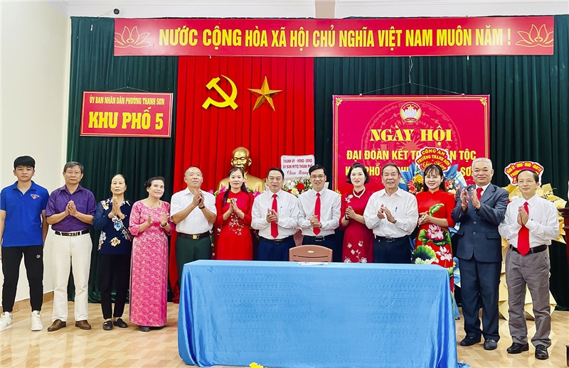 Ngày 12/11, cán bộ và Nhân dân Khu 5, phường Thanh Sơn long trọng tổ chức Ngày hội Đại đoàn kết toàn dân tộc. Dự chương trình có đồng chí Nguyễn Trung Hải, Uỷ Viên BTV, Chủ nhiệm Uỷ ban Kiểm tra Thành ủy; đồng chí Bùi Tiến Hưng, Bí thư Đảng ủy, Chủ tịch UBND phường Thanh Sơn.