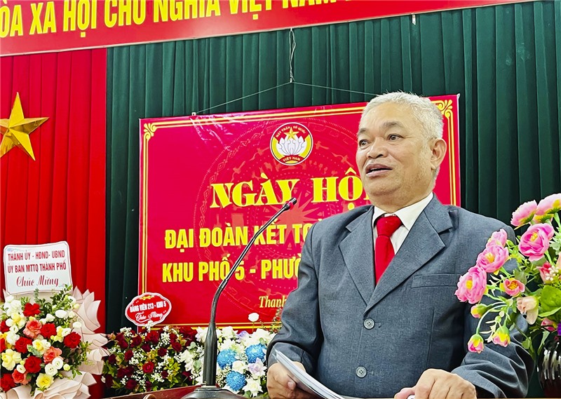Phát biểu tại Ngày hội, đồng chí Nguyễn Trung Hải, Uỷ Viên BTV, Chủ nhiệm Uỷ ban Kiểm tra Thành uỷ ghi nhận và biểu dương những kết quả nổi bật mà cán bộ và Nhân dân khu phố 5 đã đạt được trong thời gian qua. Đồng chí đề nghị cán bộ và Nhân dân trong khu tiếp tục phát huy tinh thần đoàn kết thực hiện tốt chủ trương của Đảng, chính sách pháp luật của Nhà nước, quy định của địa phương, quy ước của khu dân cư; tiếp tục triển khai thực hiện tốt 5 nội dung của Cuộc vận động "Toàn dân đoàn kết xây dựng nông thôn mới, đô thị văn minh" đi vào chiều sâu, với cách làm mới, nhân rộng các mô hình hiệu quả, đáp ứng được nhu cầu, nguyện vọng của Nhân dân; phấn đấu giữ vững danh hiệu "Khu phố văn hóa"; coi trọng việc xây dựng và củng cố khối đại đoàn kết toàn dân, tạo sự đồng thuận cao trong các tầng lớp Nhân dân.