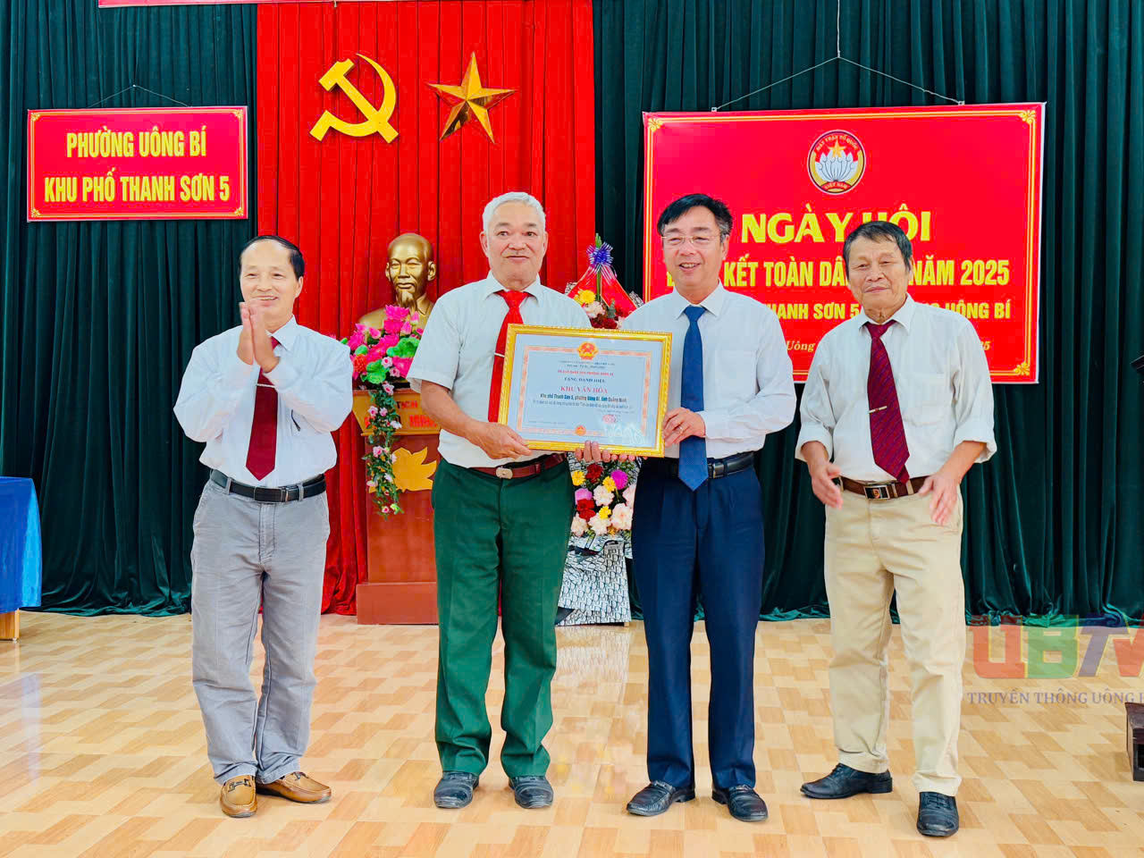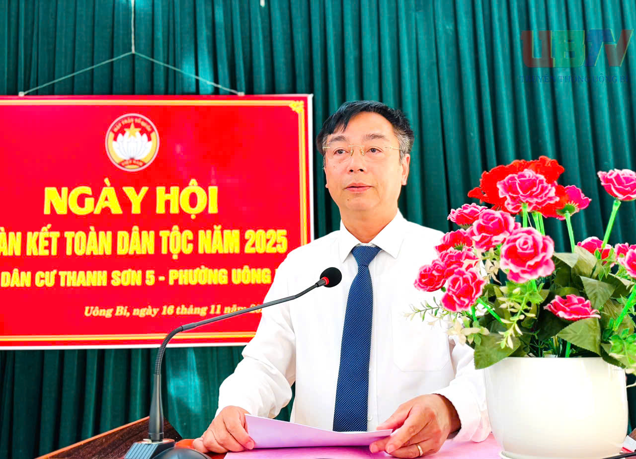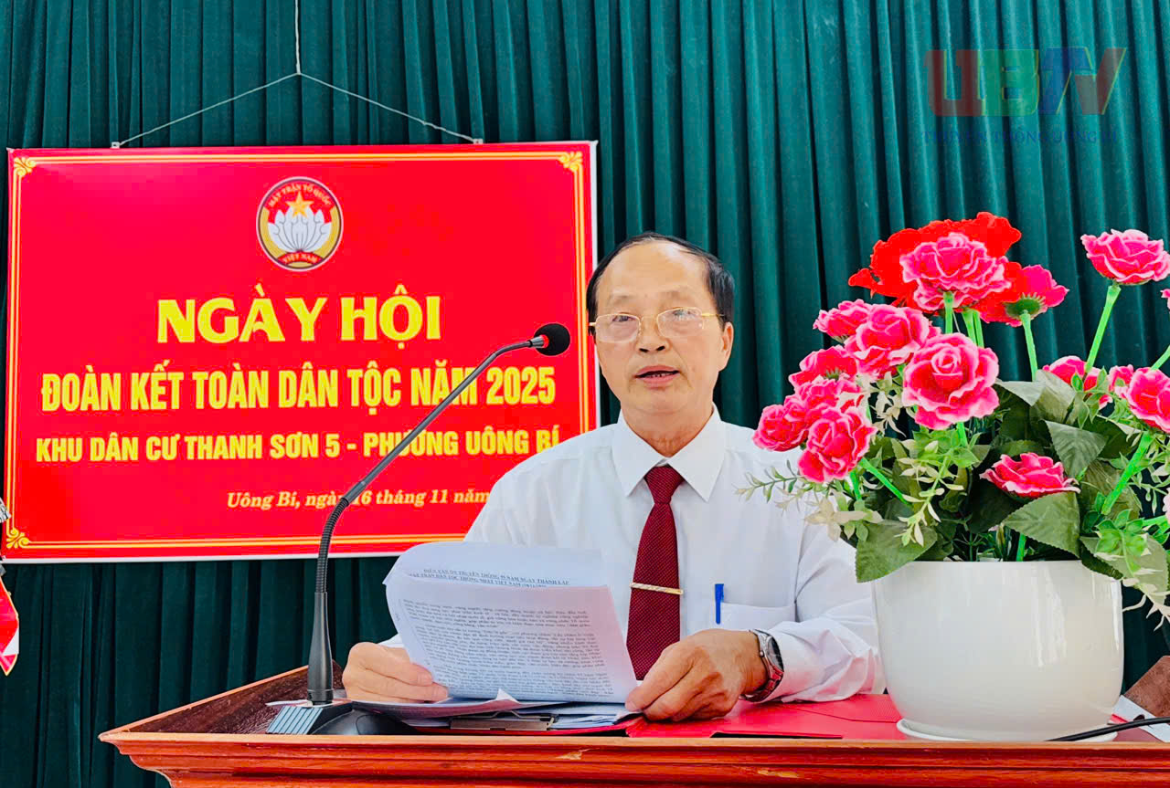 Phát biểu tại Ngày hội, đồng chí Đào Ngọc Sơn, Phó Bí thư Thường trực Đảng uỷ phường Uông Bí, ghi nhận và biểu dương những kết quả khu Thanh Sơn 5 đạt được trong năm 2025, đặc biệt là trong xây dựng đời sống văn hoá, bảo vệ môi trường và phát huy khối đại đoàn kết toàn dân.