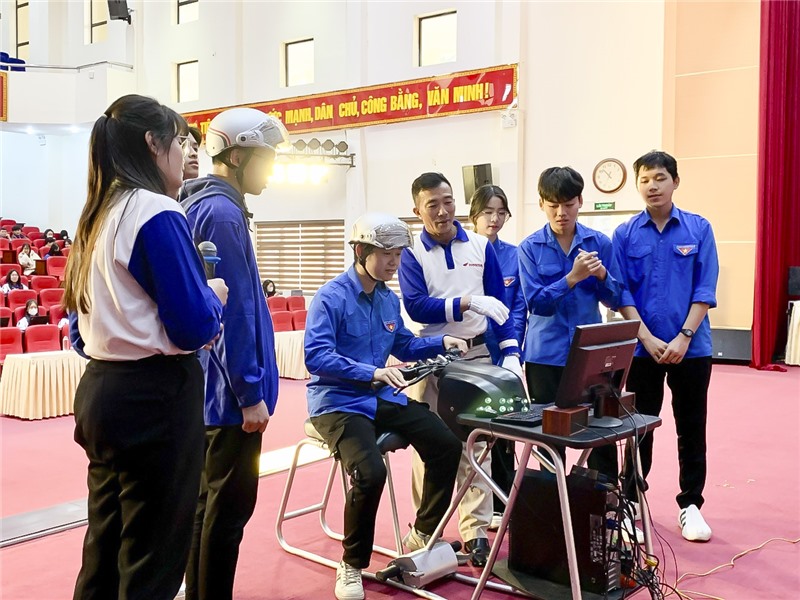 Đoàn viên Thanh niên Uông Bí được trải nghiệm các tình huống lái xe an toàn.