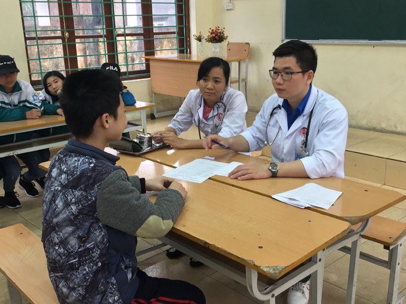 Cũng trong chương trình, các bác sỹ đã tiến hành khám sàng lọc các chuyên khoa mắt, tai mũi họng, răng hàm mặt, nội, ngoại khoa và nhi khoa cho hơn 280 học sinh nhà trường. Đồng thời tư vấn phương pháp chăm sóc sức khỏe độ tuổi vị thành niên cho các em.