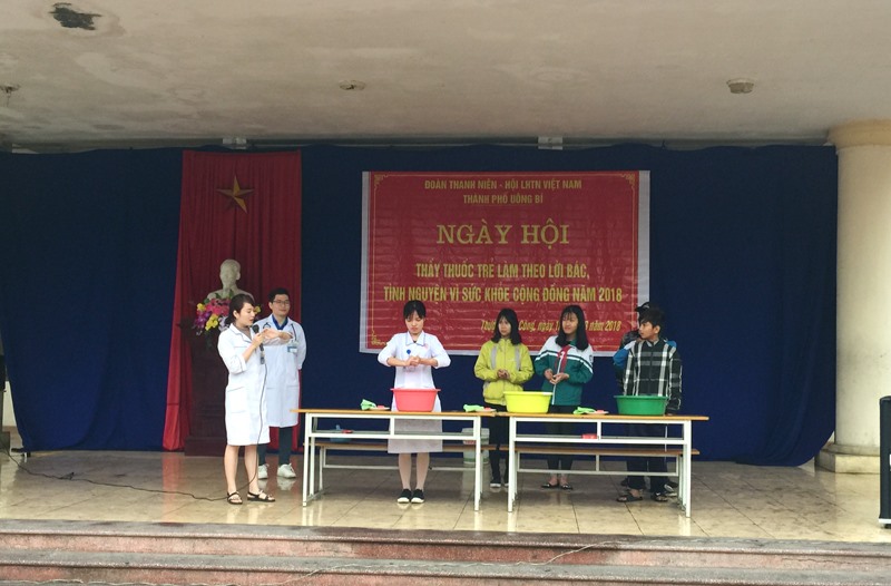 Trong chương trình, các đoàn viên thanh niên, bác sỹ trẻ của Bệnh viện Việt Nam Thụy Điển Uông Bí đã tuyên truyền về tầm quan trọng của việc giữ gìn vệ sinh đôi tay, hướng dẫn các em học sinh của trường THCS Lý Tự Trọng các bước của quy trình rửa tay thường quy và thực hành rửa tay với xà phòng.