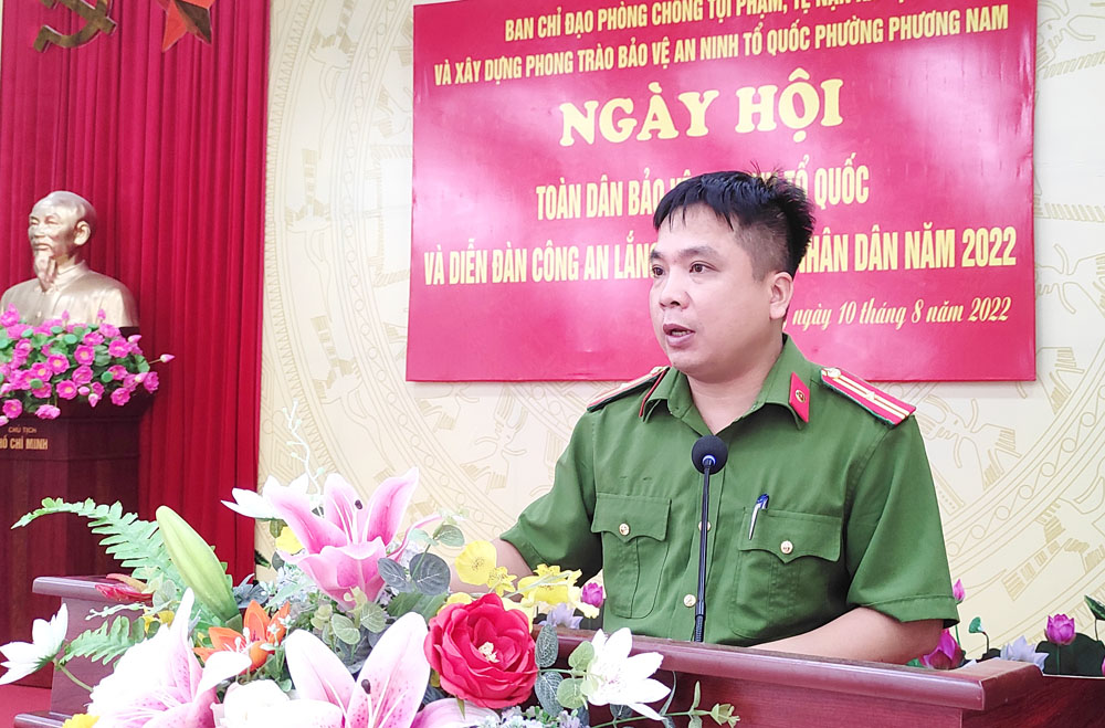 Ngày 10/8, phường Phương Nam tổ chức Ngày hội toàn dân bảo vệ an ninh Tổ quốc và diễn đàn công an lắng nghe ý kiến Nhân dân năm 2022. Thượng tá Vũ Đức Hoan, Phó trưởng Công an thành phố dự, chỉ đạo chương trình.
