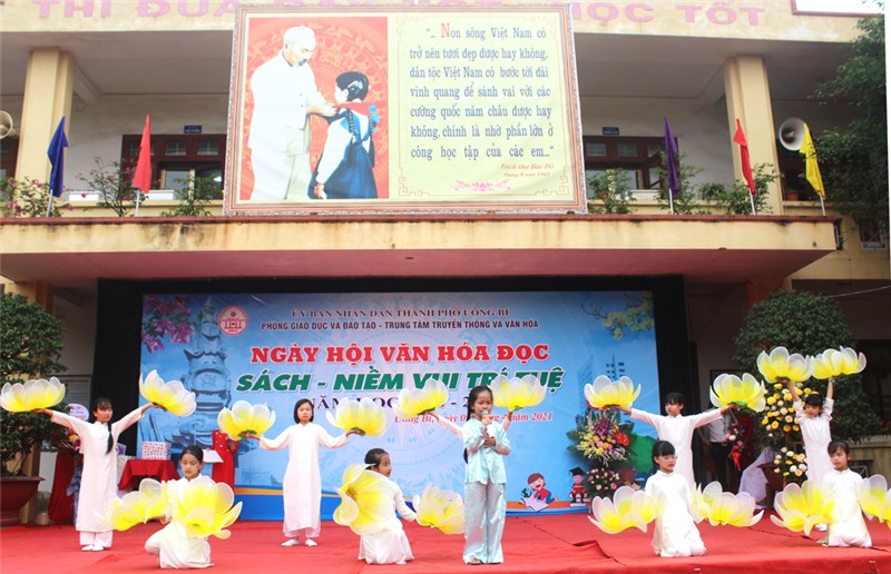 Nhằm hưởng ứng Ngày sách Việt Nam 21/4, Ngày sách và bản quyền thế giới 23/4 và tôn vinh giá trị của sách, khẳng định vai trò, vị trí, tầm quan trọng của sách trong đời sống xã hội; nâng cao trách nhiệm của các trường tiểu học trong việc xây dựng văn hóa đọc, hình thành thói quen đọc sách, niềm yêu thích đọc sách trong cán bộ quản lý, giáo viên, nhân viên và học sinh; đồng thời tạo cơ hội giao lưu, học tập, chia sẻ kinh nghiệm trong công tác quản lý thư viện cho các trường tiểu học trong toàn thành phố, sáng ngày 2/4, tại Trường TH Lý Thường Kiệt, Phòng GD-ĐT TP Uông Bí phối hợp với Trung tâm Truyền thông - Văn hóa thành phố tổ chức Ngày hội Văn hóa đọc cấp Tiểu học, năm học 2020-2021, với chủ đề “Sách - niềm vui trí tuệ”.