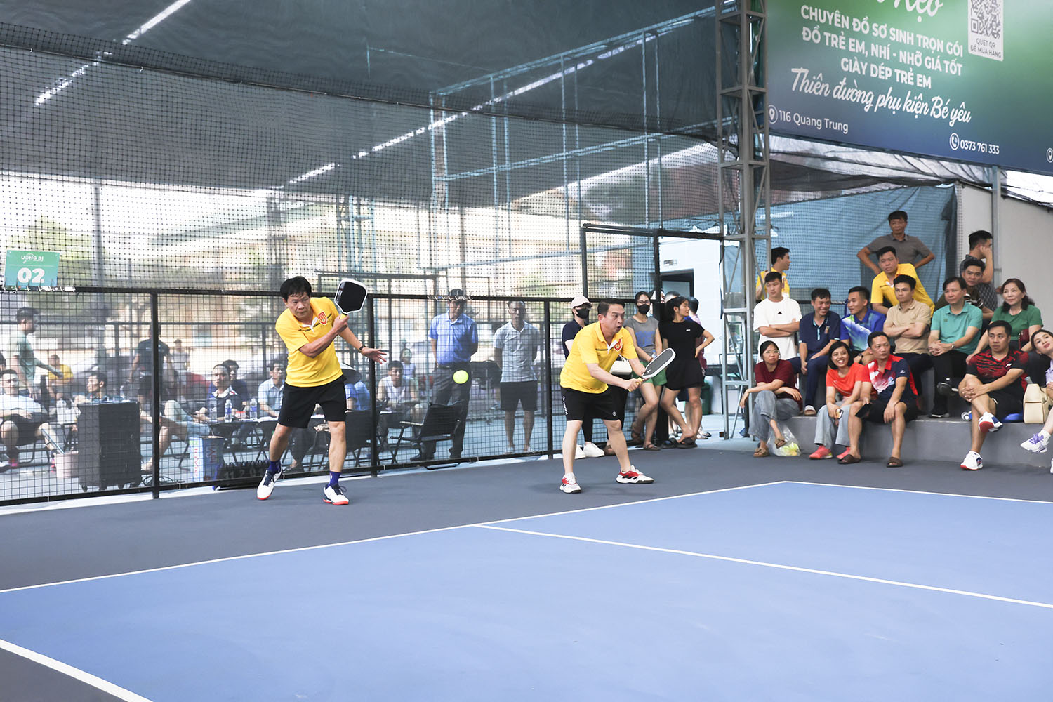 Các vận động viên tranh tài tại trận chung kết môn pickleball theo nhóm tuổi.
