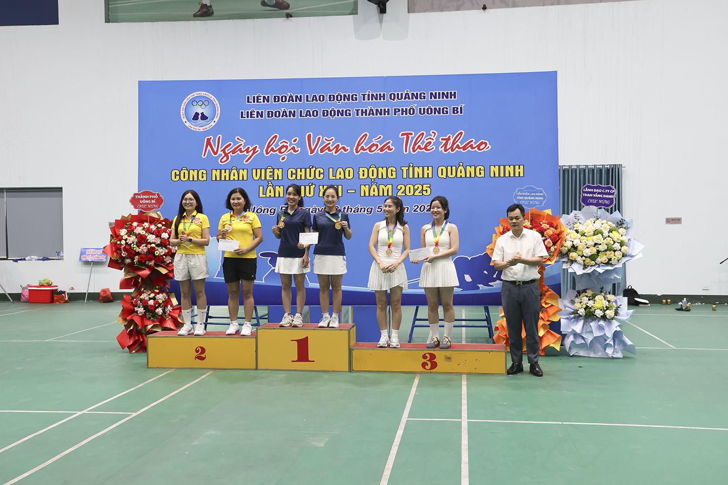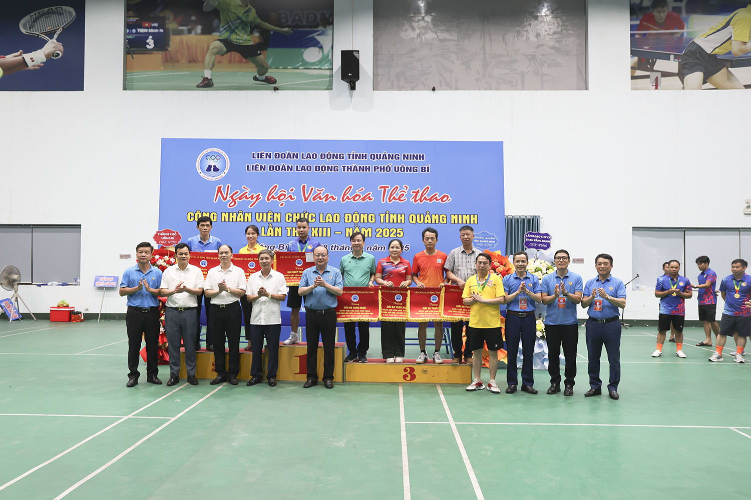 Sau một ngày tranh tài sôi nổi, Ban Tổ chức đã trao giải cho các tập thể và cá nhân có thành tích xuất sắc ở từng nội dung thi đấu. Đồng thời, trao 11 giải toàn đoàn cho các đội tham gia. Trong đó, Trường Cao đẳng Công nghiệp và Xây dựng xuất sắc giành giải Nhất toàn đoàn; Công ty CP Than Vàng Danh và Khối Dân Chính Đảng giành giải Nhì toàn đoàn.