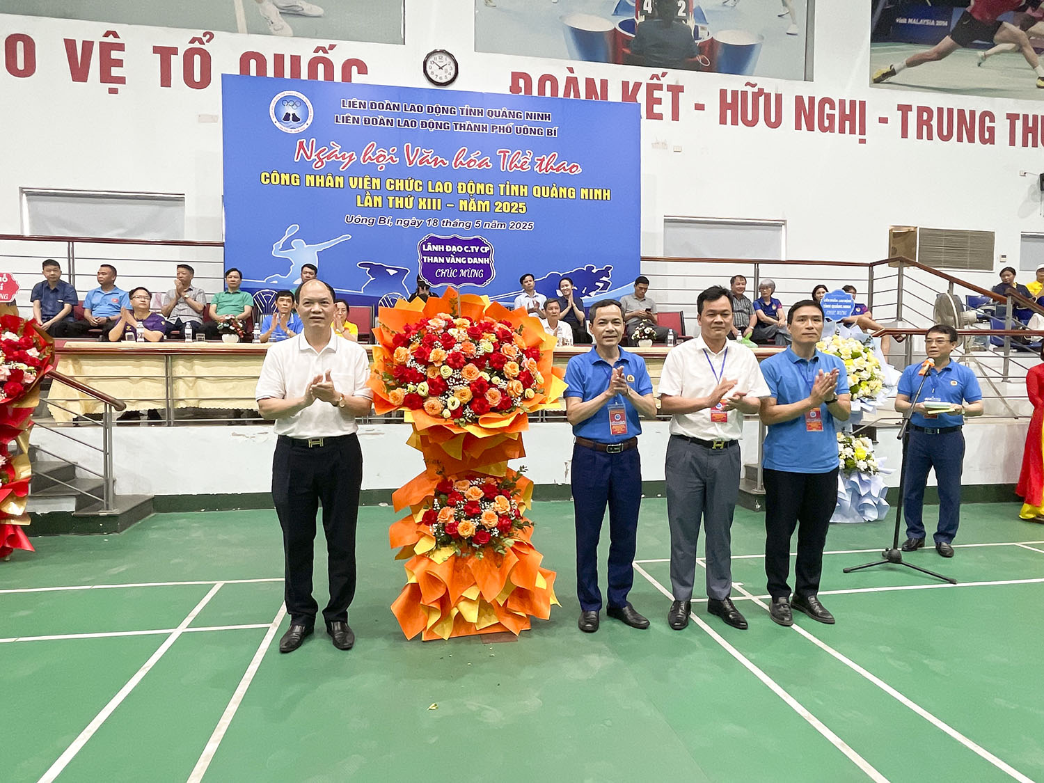 Lãnh đạo Công ty Cổ phần Than Vàng Danh tặng hoa chúc mừng.