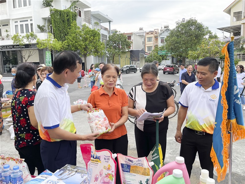 Công ty cũng bố trí gian hàng bán và quy đổi quà cho khách hàng nộp rác với nhiều mặt hàng thiết yếu như nước giải khát, bánh kẹo, hóa mỹ phẩm…