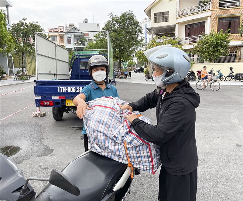 Nhân viên Công ty hỗ trợ người dân vận chuyển rác thải tái chế.