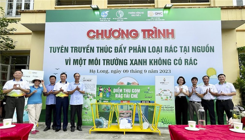 Cũng trong khuôn khổ chương trình, Công ty CP Xi măng và Xây dựng Quảng Ninh phối hợp với Chi cục bảo vệ môi trường tỉnh và các đơn vị tổ chức tuyên truyền, nâng cao nhận thức về bảo vệ môi trường cho nhân dân trên địa bàn phường Hồng Hà, thành phố Hạ Long. Trong đó trọng tâm là các nội dung tuyên truyền về hiệu quả của việc phân loại rác từ nguồn, tái chế rác thải. Nhân dịp này, Công ty đã trao tặng 01 bộ thùng phân loại Vracbank cho khu 4, phường Hồng Hà, thành phố Hạ Long.