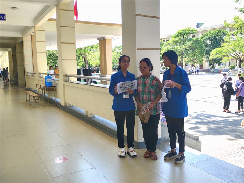 Lực lượng thanh niên tình nguyện hỗ trợ, hướng dẫn thí sinh.