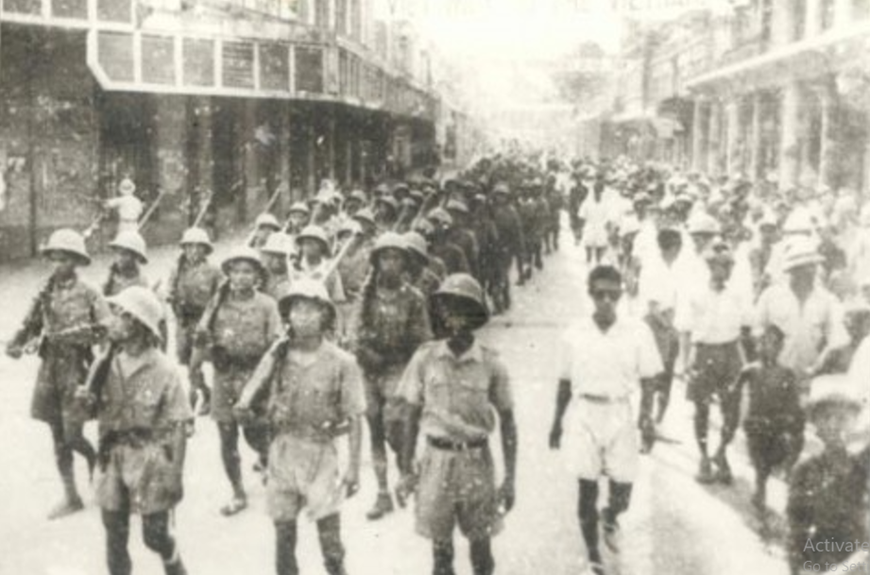 Lực lượng vũ trang bảo vệ quần chúng Tổng khởi nghĩa Tháng Tám năm 1945 tại Hà Nội. Ảnh tư liệu
