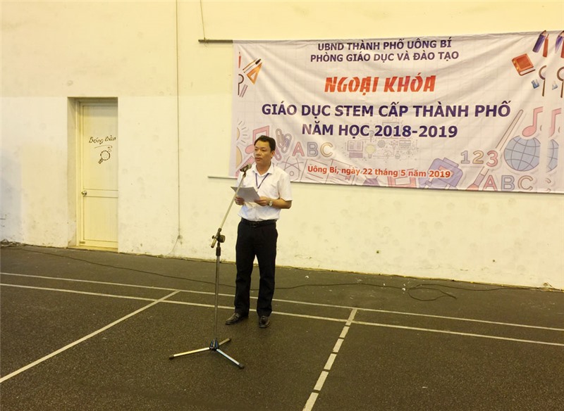 Đồng chí Trần Nam Hải, Phó trưởng Phòng GD - ĐT thành phố phát biểu khai mạc buổi ngoại khoá.