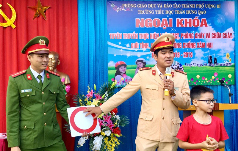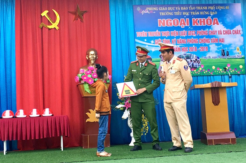 Sáng ngày 30-11, Trường Tiểu học Trần Hưng Đạo tổ chức chương trình ngoại khóa tuyên truyền, phổ biến Luật ATGT, phòng cháy chữa cháy, kỹ năng sống cho học sinh, cán bộ, giáo viên.
