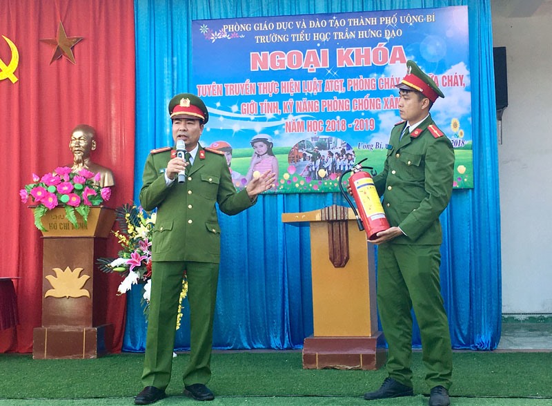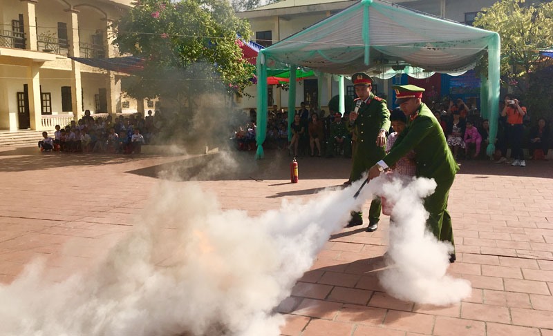 Cũng tại chương trình, cán bộ, giáo viên, học sinh nhà trường cũng được lực lượng Cảnh sát PCCC phổ biến những kiến thức cơ bản về PCCC như: nguy cơ, nguyên nhân dẫn đến cháy, nổ trong gia đình, nhà trường, các biện pháp phòng ngừa, cấu tạo và cách sử dụng bình bột chữa cháy… Đồng thời, trực tiếp tham gia thực hành kỹ năng dập tắt đám cháy giả định trong trường học.