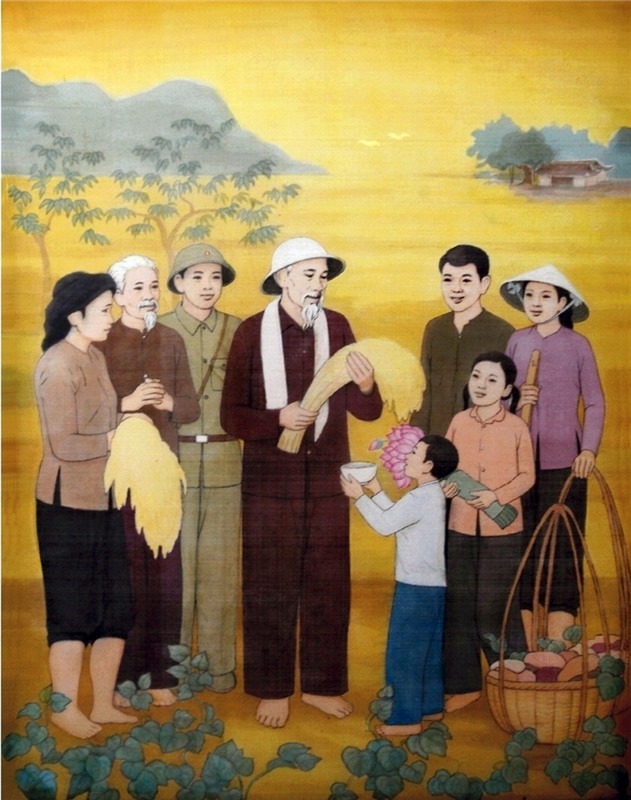 Bức tranh lụa "Bác Hồ với nông dân" của họa sĩ Đặng Đình Nguyễn.