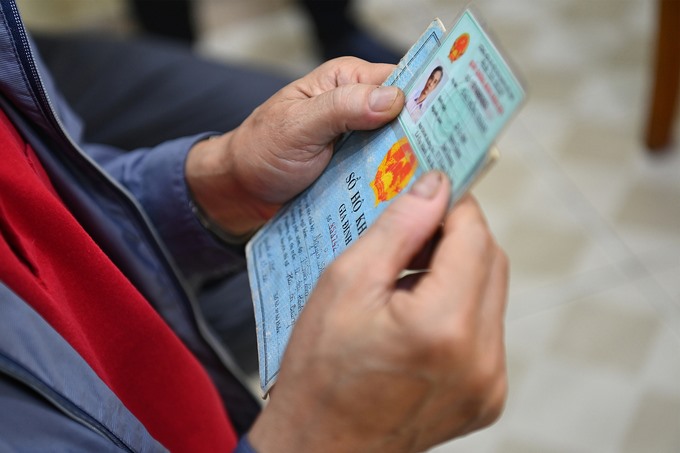 Một người dân cầm chứng minh thư và hộ khẩu giấy đi làm thẻ căn cước công dân gắn chip, ngày 9/3. Ảnh: Giang Huy
