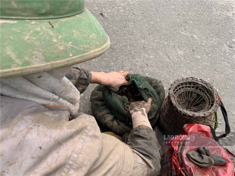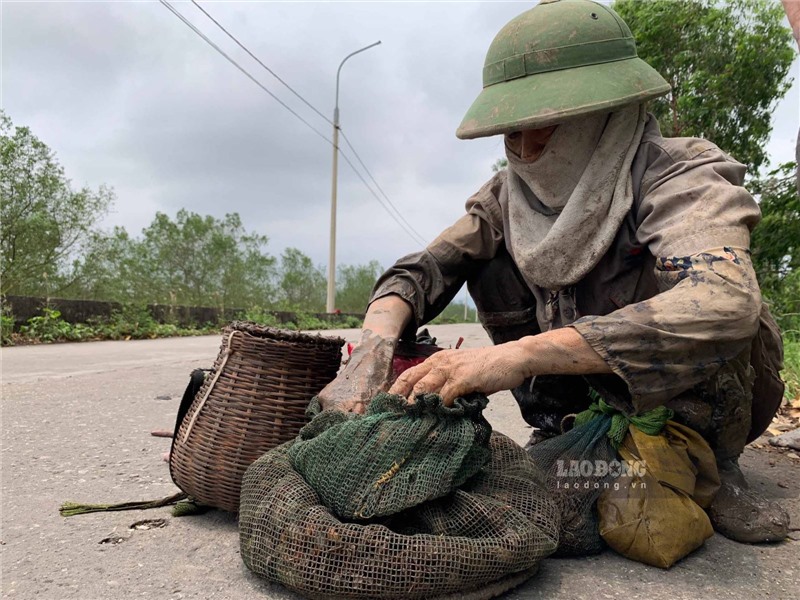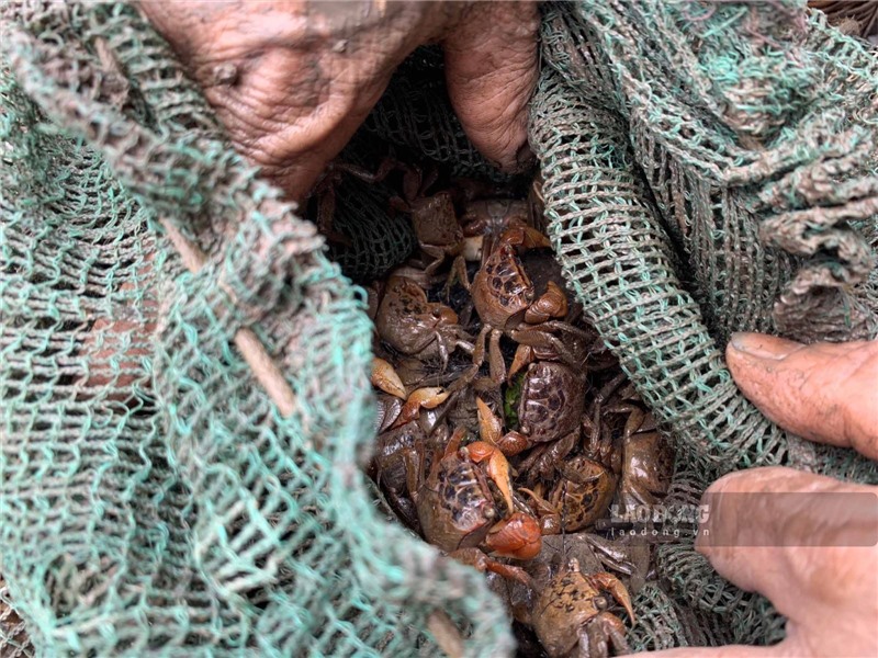 Cũng theo bà Hồng, không dễ mà bắt được loài “nhát như cáy” này, chỉ cần thấy có động nhẹ là cáy đã nhanh chóng chui tọt xuống lỗ. “Vậy nên chúng tôi phải nhẹ nhàng khi thấy cáy đang bò và mang theo tư trang là cuốc hoặc đồ móc cáy để thuận lợi hơn và đỡ bị đau tay” - bà Hồng nói.