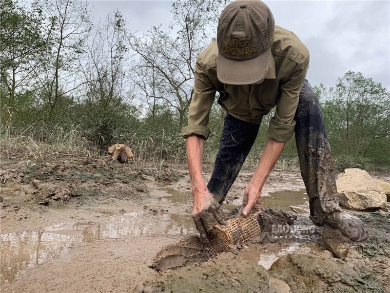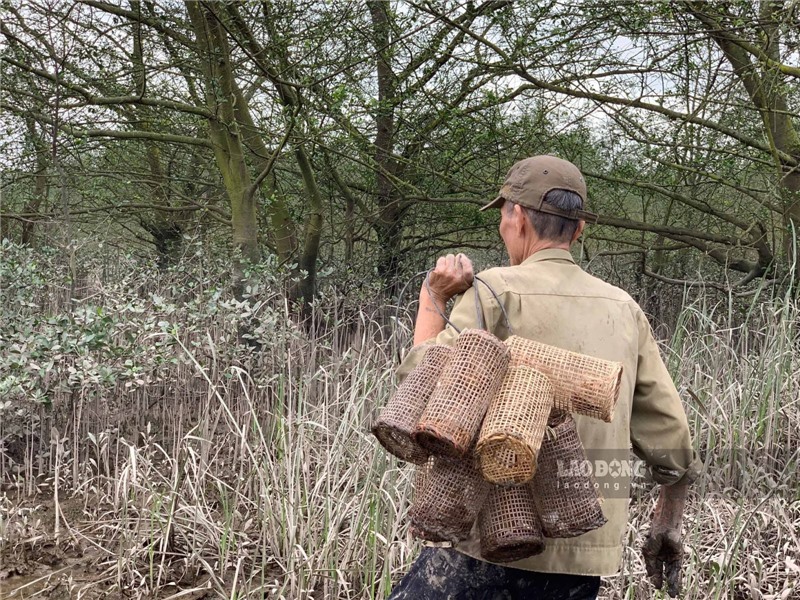 Để không phải mất nhiều thời gian cho việc săn bắt, nhiều người dân sử dụng lờ đơm cáy.