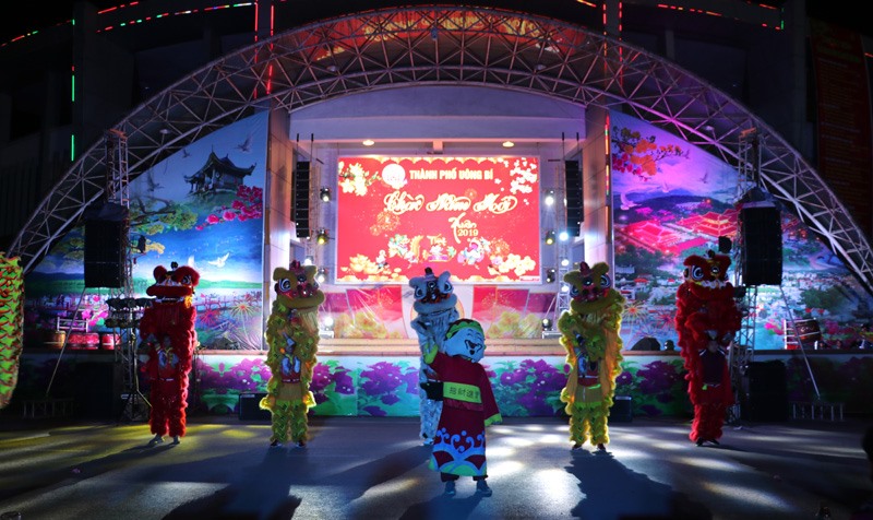 Màn diễn rồng lân mở màn chương trình văn nghệ Uông Bí chào xuân mới.