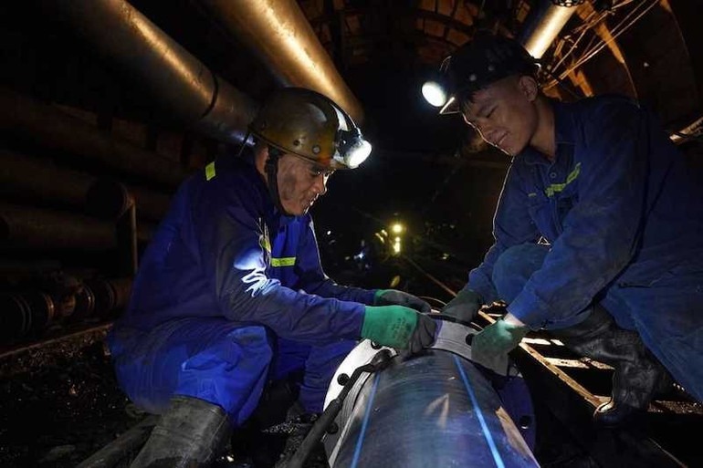 Thợ lò Phạm Đình Duẩn luôn dành sự quan tâm đặc biệt giúp đỡ cho thợ lò trẻ trong công việc.