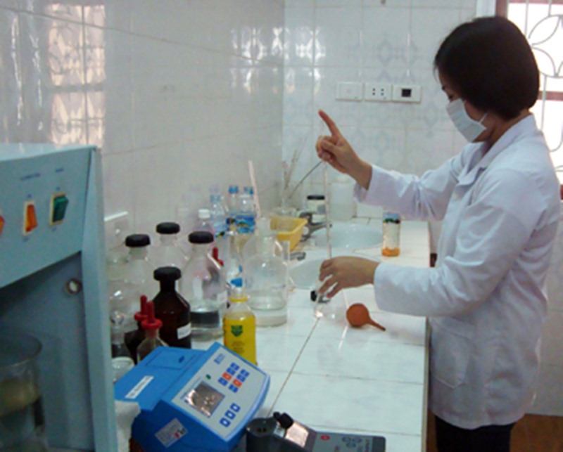 Nhân viên kỹ thuật Xí nghiệp nước Uông Bí kiểm tra chất lượng nước.