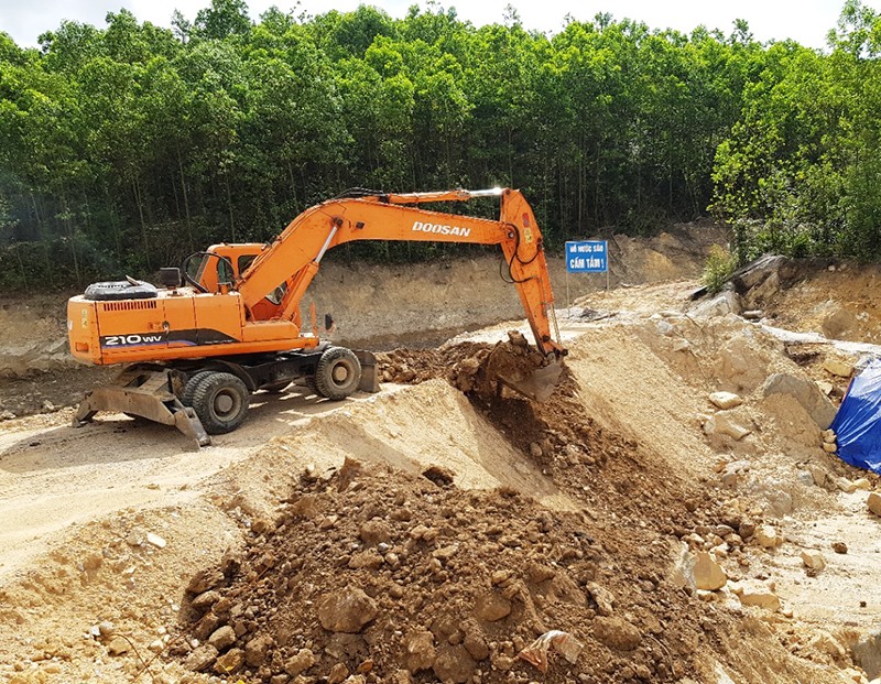 Lực lượng chức năng TP Uông Bí phá dỡ 1 đập đất do chùa Ba Vàng đào đắp ngăn dòng chảy thác Lựng Xanh để sử dụng nguồn nước vào ngày 26/5 vừa qua.