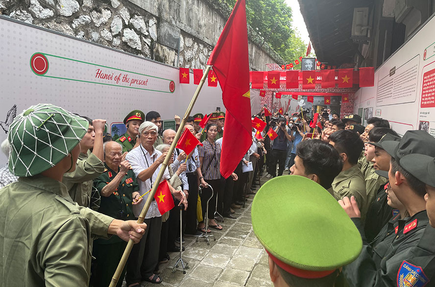 Những người lính năm xưa sống lại không khí hào hùng của ngày giải phóng Thủ đô tại trưng bày. Ảnh: Miên Hạo