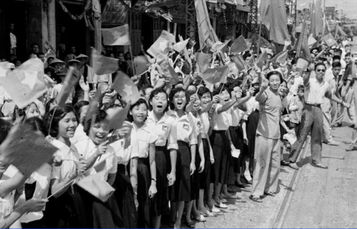 Nhân dân thủ đô vui mừng đón chào đoàn giải phóng quân ngày 10/10/1954. Ảnh tư liệu