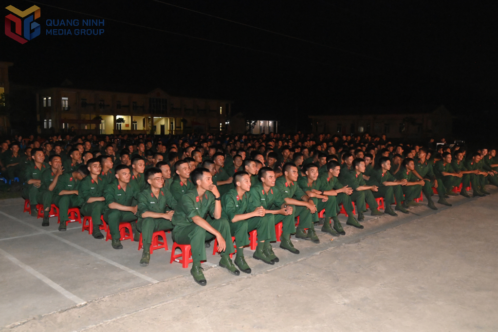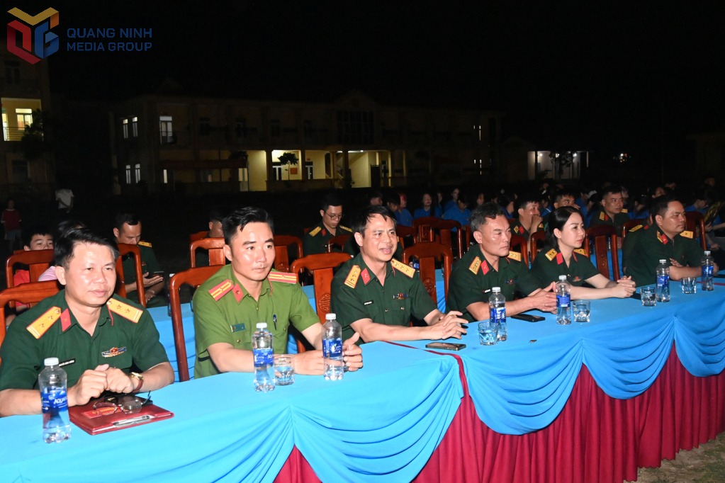 Cán bộ, chiến sĩ và nhân dân chăm chú theo dõi buổi biểu diễn.