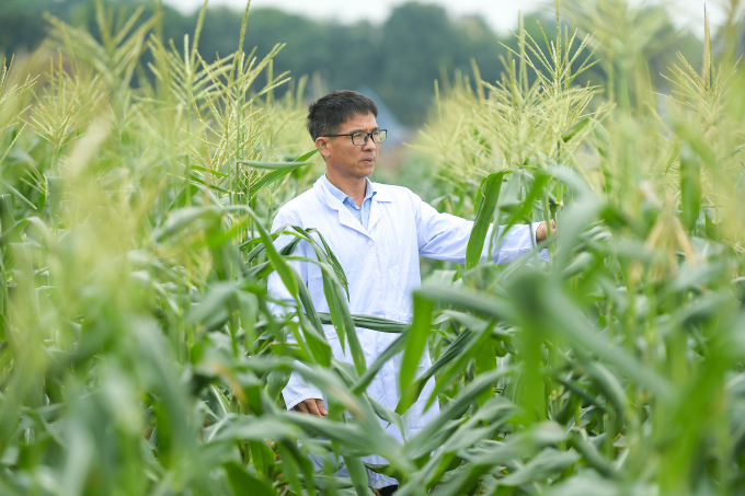 ThS Nguyễn Văn Hà, đại diện nhóm nghiên cứu thực nghiệm tại ruộng ngô SSW18. Ảnh: Nhóm nghiên cứu