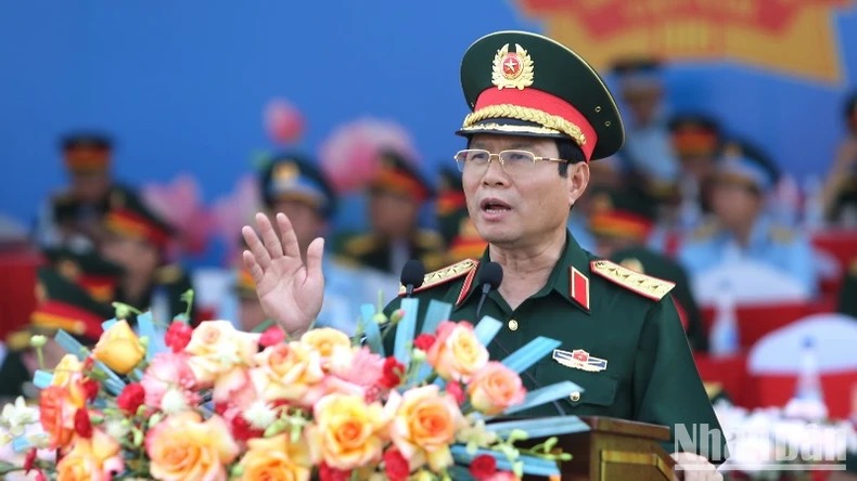 Đại tướng Nguyễn Tân Cương phát biểu đánh giá về buổi tổng hợp luyện.