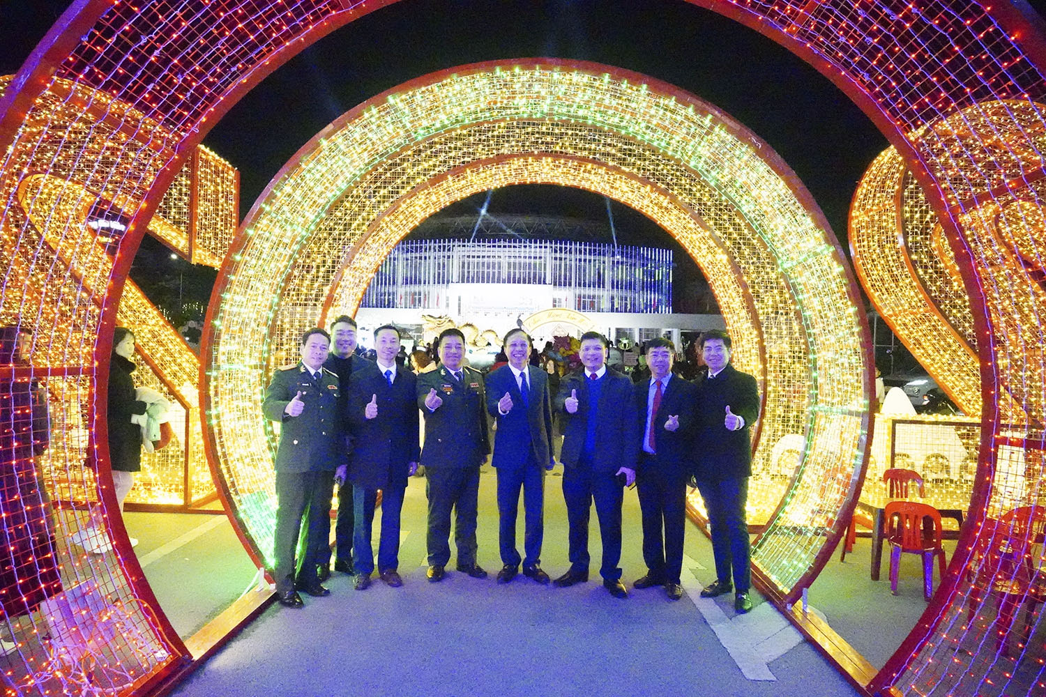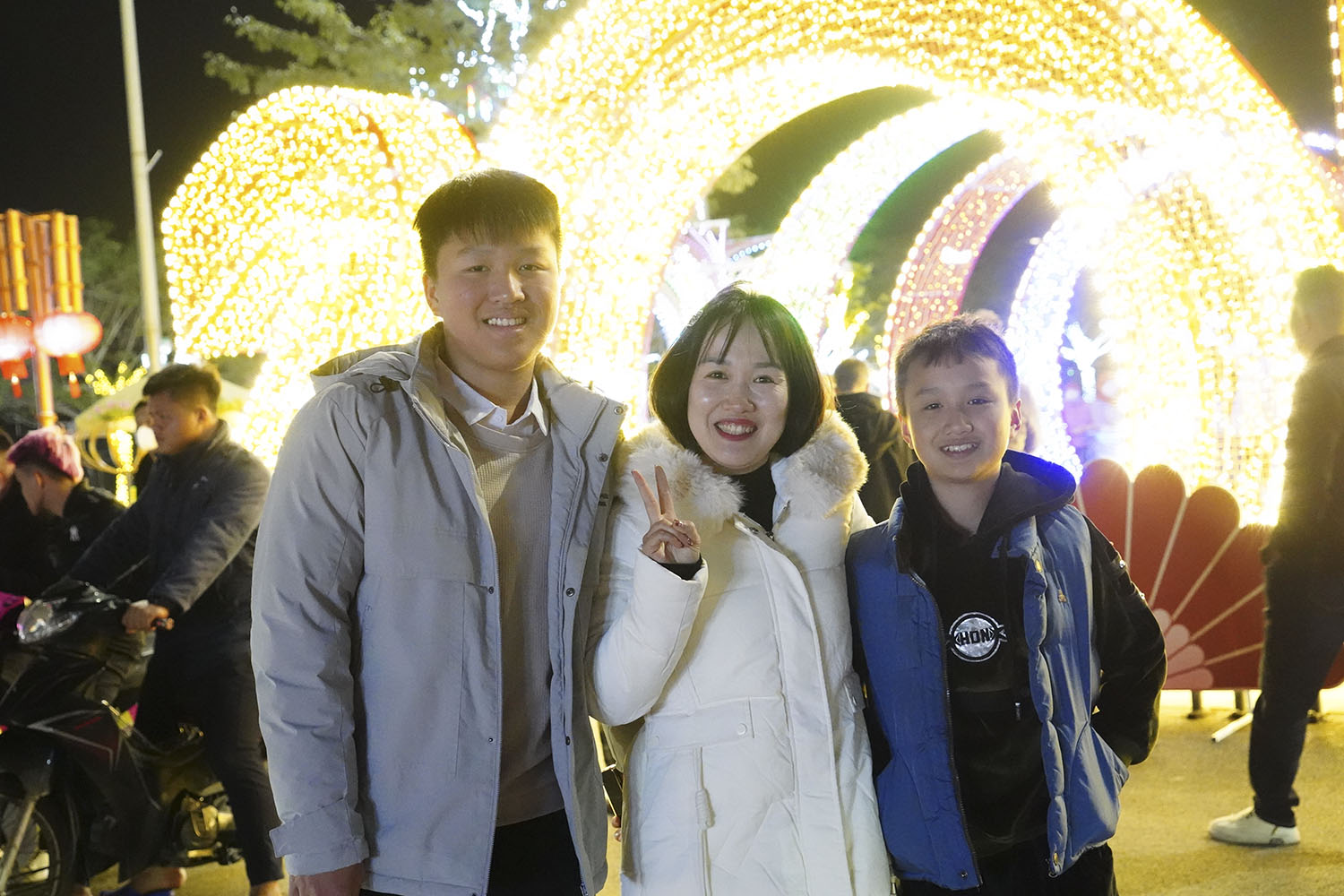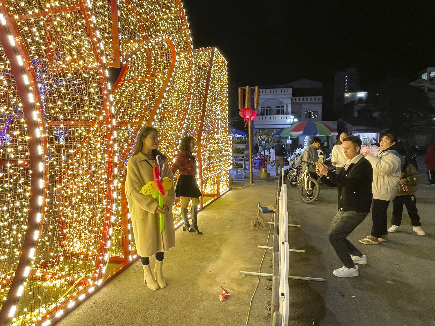 Nhân dân và các đại biểu check-in chụp ảnh lưu niệm tại các cụm đèn trang trí.