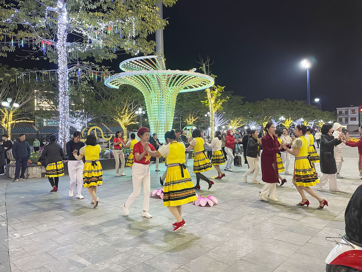 Quảng trường 25/2 sáng rực lung linh với nhiều cụm đèn trang trí là địa điểm sinh hoạt văn hoá tinh thần cho người dân.