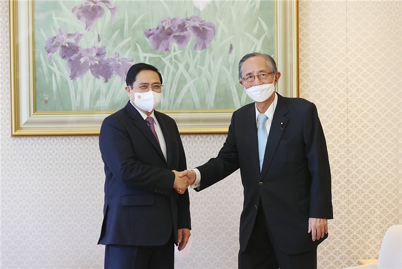 Hội kiến Chủ tịch Hạ viện Nhật Bản Hosoda Hiroyuki, Thủ tướng Phạm Minh Chính bày tỏ cảm ơn sự giúp đỡ, hỗ trợ quý báu, kịp thời của Nhật Bản dành cho Việt Nam trong công cuộc phòng chống dịch bệnh COVID-19, đặc biệt là việc Nhật Bản công bố viện trợ thêm 1,5 triệu liều vaccine cho Việt Nam trong chuyến thăm của Thủ tướng, nâng tổng số vaccine viện trợ của Nhật Bản lên 5,6 triệu liều.