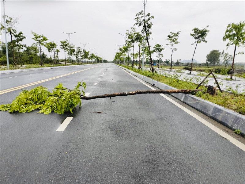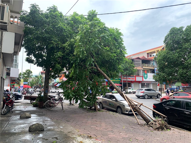 Cây cối bị gẫy đỗ tại tuyến đường Đinh Tiên Hoàng, phường Quang Trung và tuyến đường Trần Hưng Đạo, phường Yên Thanh.