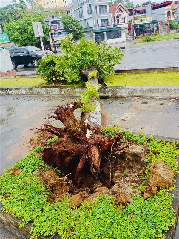 Nhiều cây xanh trên các tuyến phố bị gẫy đổ.