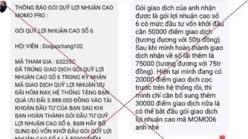 Sau khi tải ứng dụng và đăng nhập, anh H. được mời tham gia hệ thống “quỹ đầu tư MoMo Pro” với lời hứa lợi nhuận cao. Tin lời, nạn nhân chuyển 3 lần tiền với tổng số tiền 330 triệu đồng. Tuy nhiên, khi thực hiện thao tác rút tiền, hệ thống báo lỗi và yêu cầu nạp thêm số tiền tương đương. Nhận thấy dấu hiệu bất thường, anh H. đến cơ quan Công an trình báo.
