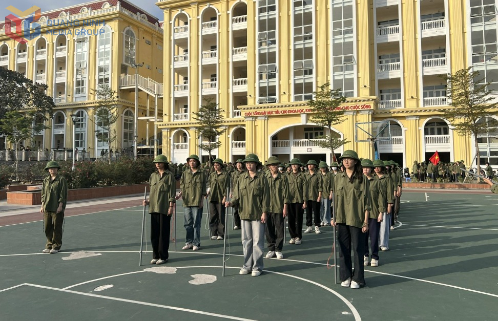 Học sinh Trường THPT Hòn Gai trong tiết học Giáo dục quốc phòng.