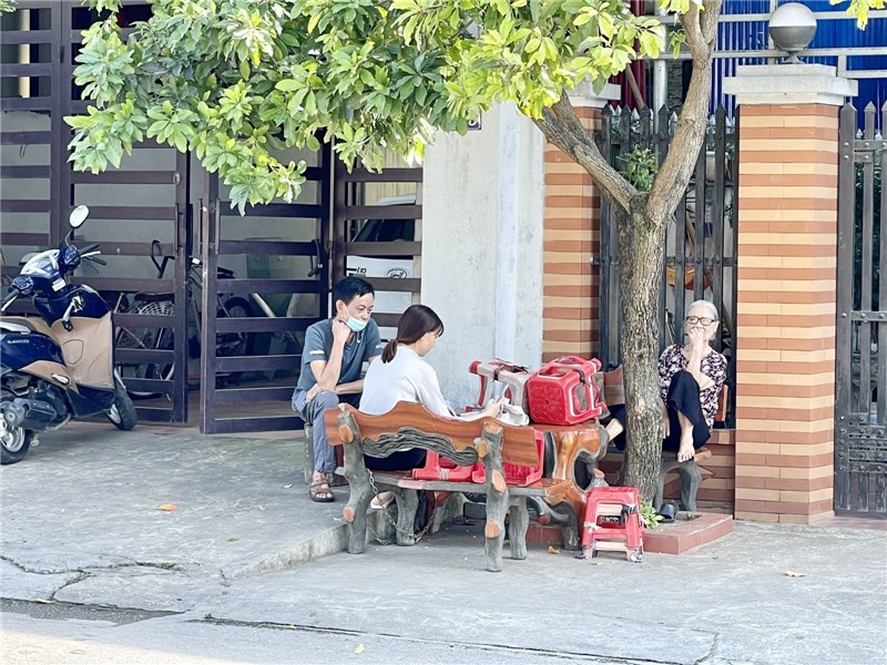 Người dân tụ tập, không đeo khẩu trang đúng cách phòng chống dịch tại phường Yên Thanh, Thanh Sơn.