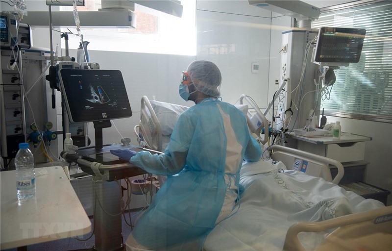 Nhân viên y tế điều trị cho bệnh nhân COVID-19 tại bệnh viện ở Barcelona, Tây Ban Nha, ngày 15/1/2021. (Ảnh: THX/TTXVN)