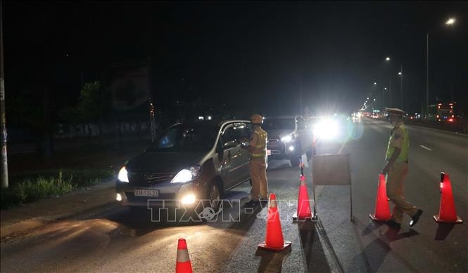 Lực lượng chức năng lập chốt kiểm tra xử lý vi phạm nồng độ cồn. Ảnh tư liệu: Đậu Tất Thành/TTXVN