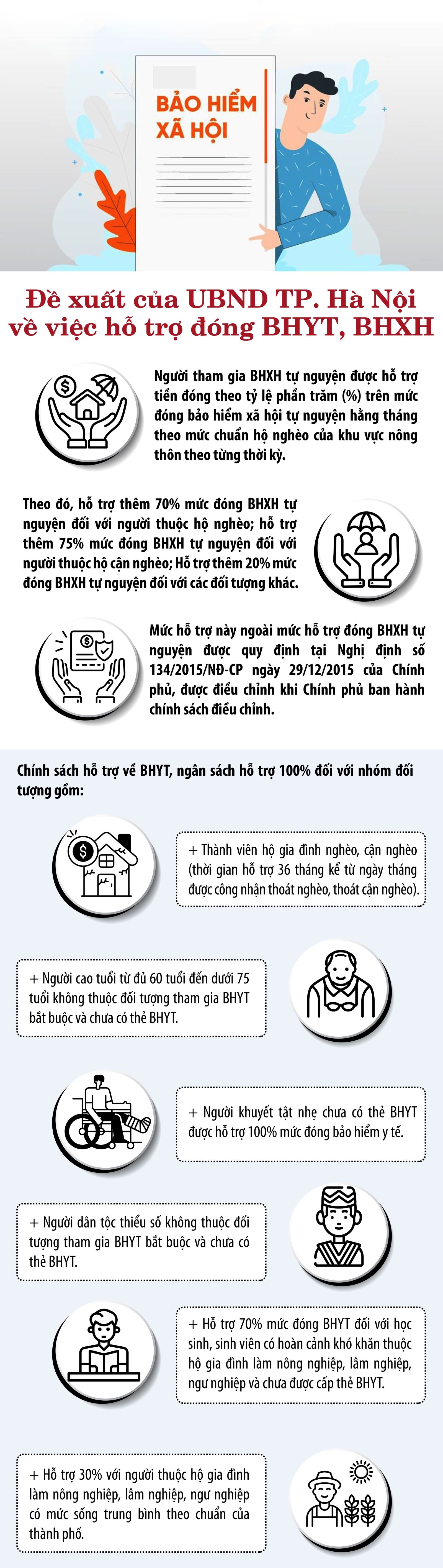 UBND TP. Hà Nội đang tổ chức lấy ý kiến về Dự thảo Nghị quyết Quy định mức hỗ trợ kinh phí đóng bảo hiểm xã hội (BHXH) tự nguyện, bảo hiểm y tế (BHYT) cho một số đối tượng trên địa bàn thành phố.
