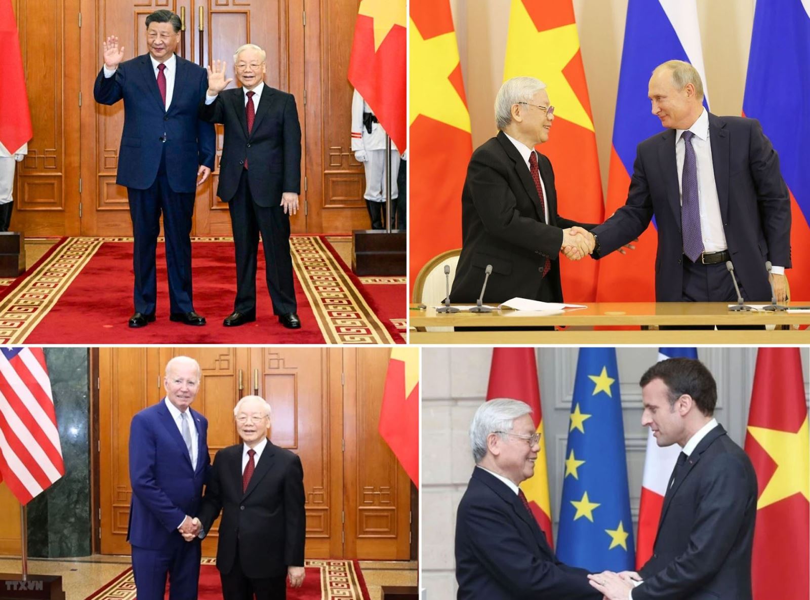 Từ việc tổng kết thực tiễn công tác đối ngoại của Đảng, ngoại giao của Nhà nước ta, Tổng Bí thư Nguyễn Phú Trọng đã khái quát về trường phái ngoại giao “Cây tre Việt Nam” - mang đậm bản sắc dân tộc, “dĩ bất biến, ứng vạn biến”, “giữ trái tim nóng, cái đầu lạnh”, “kiên quyết, kiên trì” để xử lý các thách thức đối ngoại một cách mềm mại mà hiệu quả, tranh thủ các điểm đồng về lợi ích để thúc đẩy hợp tác và phát triển, bảo vệ tối đa lợi ích của dân tộc.