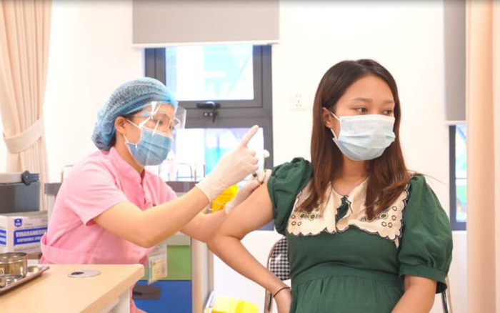 Nhân viên y tế tiêm vaccine ngừa Covid-19 cho thai phụ.