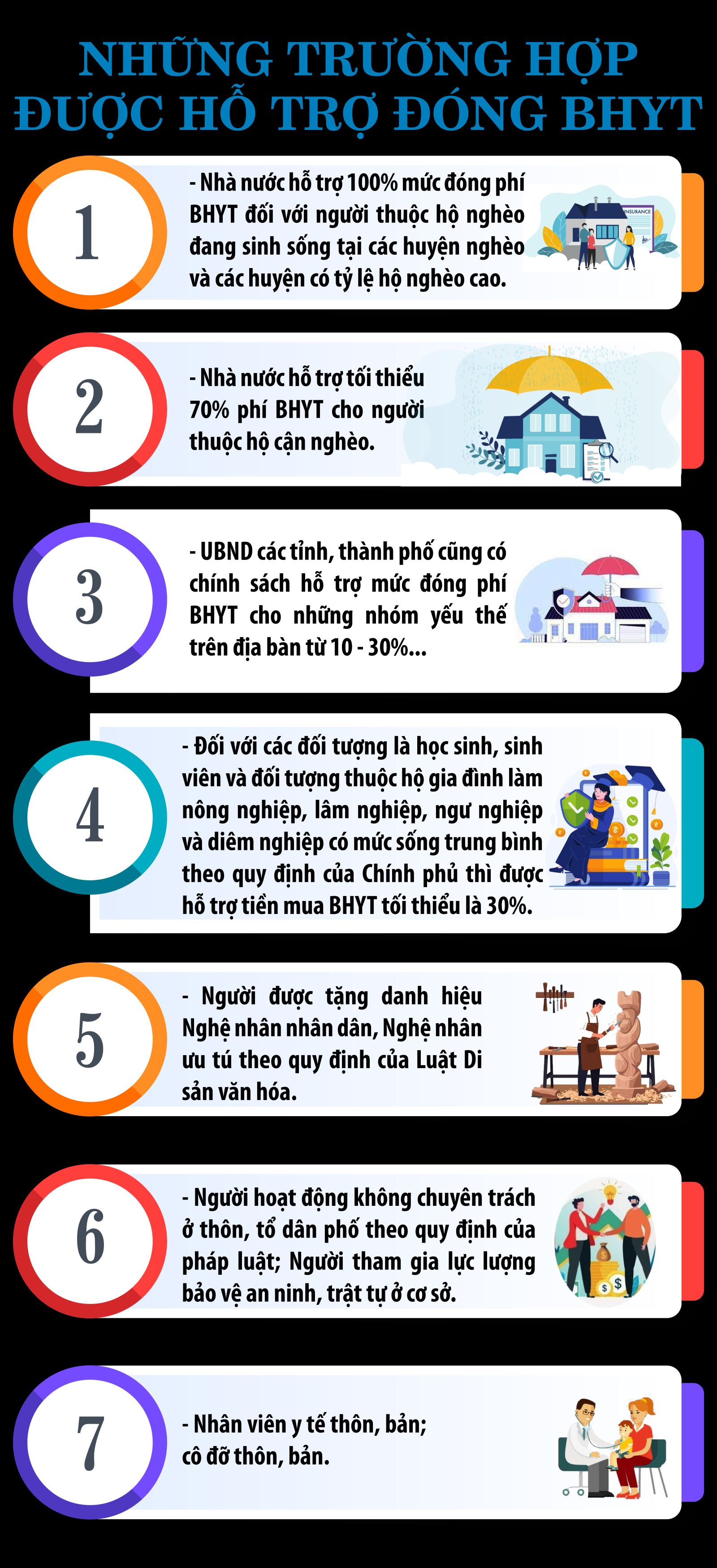 Theo khoản 4, Điều 12 của Luật sửa đổi, bổ sung Luật BHYT năm 2024, số 51/2024/QH15 đã được Quốc hội thông qua, có hiệu lực thi hành từ ngày 1/7/2025, có một số nhóm đối tượng được ngân sách nhà nước hỗ trợ mức đóng BHYT.
